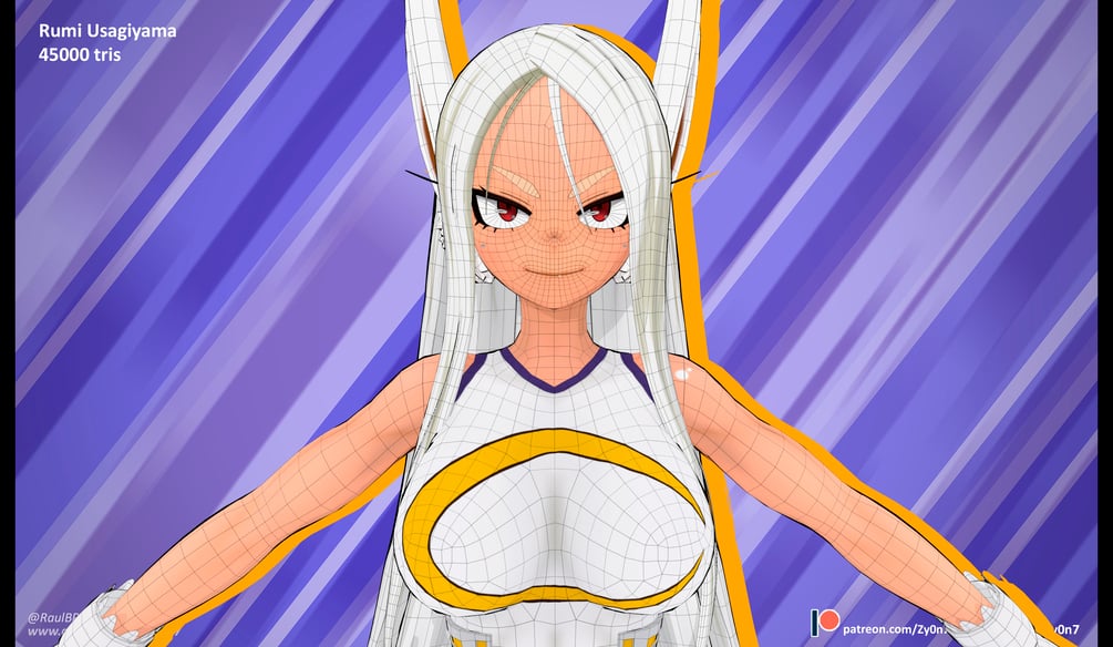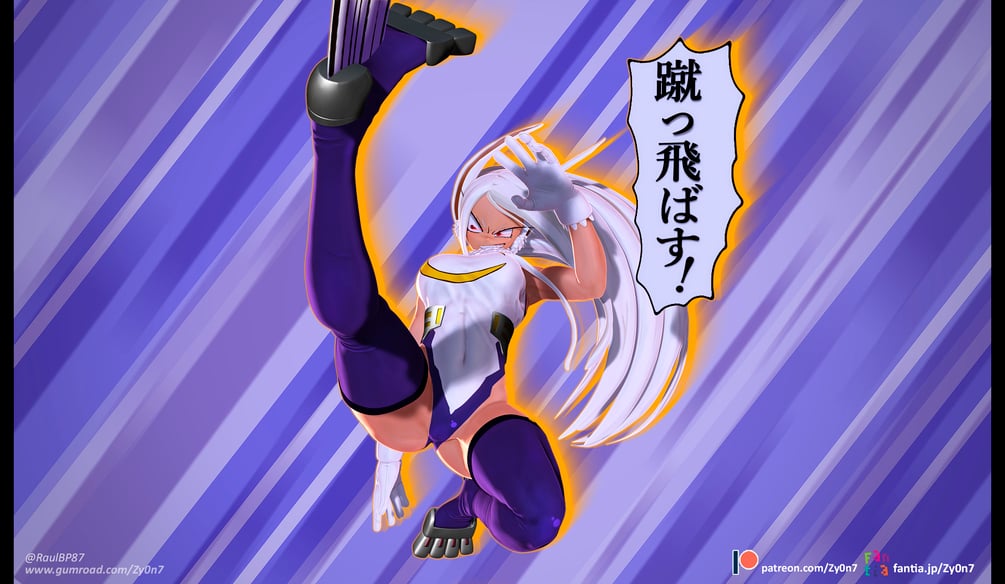 This set includes 35+ 3k resolution jpg renders of rabbit hero Mirko in her hero outift. Featuring two poses, kicking and standing with posed arms, with two expressions, a furious one and a cool elegant one. Both poses include variations. There is also a silly catgirl variation.