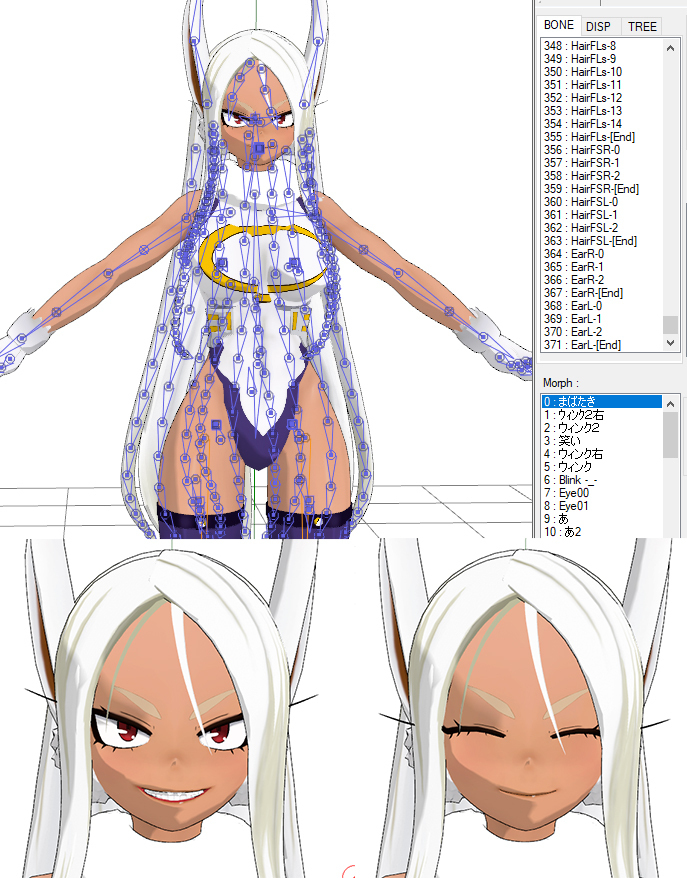 This model now includes a blender version. This extremely versatile rig features layers, physics simulations, face and pose libraries, tongue&special controls and real time mocap capabilities for face-it and hallway tile, and more. This blender version also includes the white bunnysuit aside from the regular hero outfit.