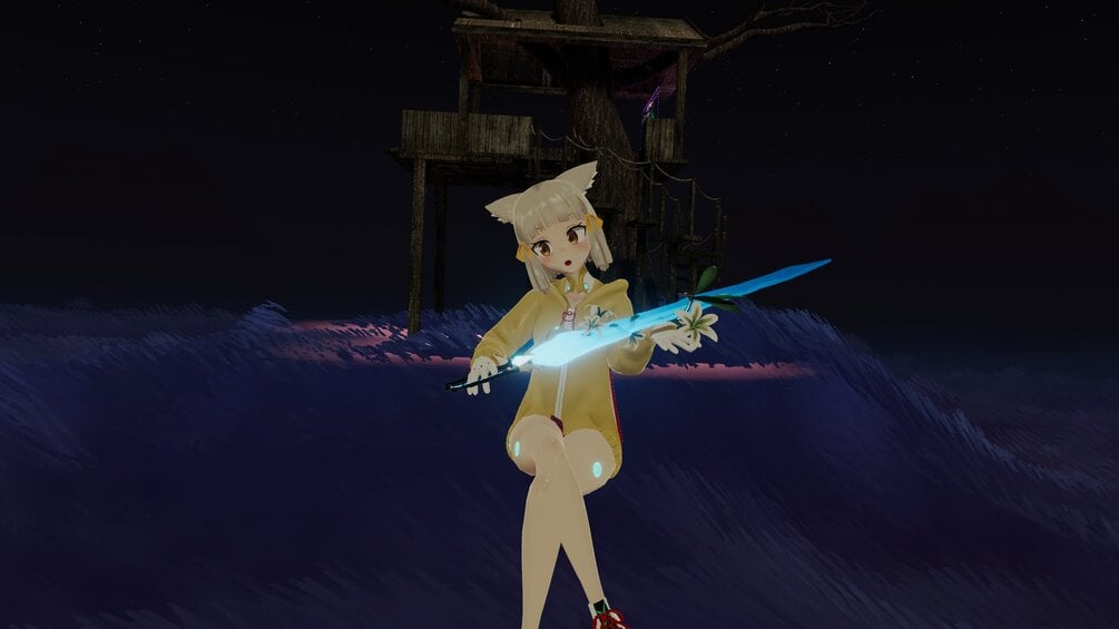 This model now includes an avatar for VRChat that includes the body suit, hoodie (with hood on or off) and the sword. The sword can be held and used for combat system. These are bonus files and provided as is, no guarantee or support is provided. Avatar is for private use and is not allowed to be uploaded publicly. Vrc version by @TheKareeda. More info in readme file.