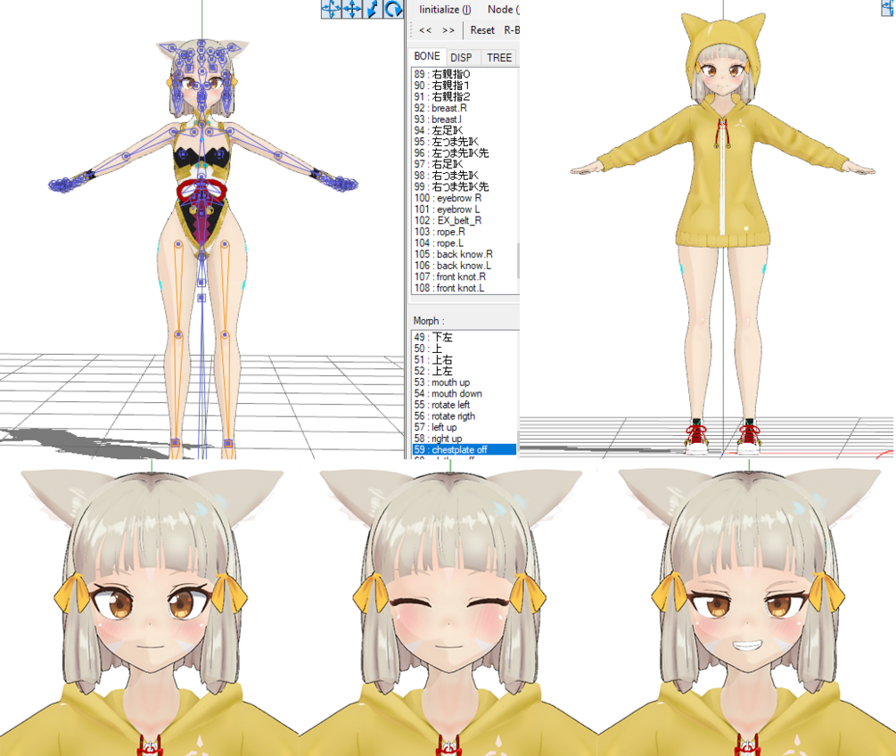 This model now includes a pmx for MMD version with both the hoodie outfit and the blade bodysuit, blade weapon is also included. These are bonus files and provided as is, no guarantee or support is provided. Pmx port by @Xgonngivit